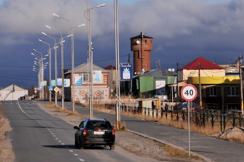 Дальше следуют Пурпе и Губкинский. Отсюда 200 километров до «границы» с Ханты-Мансийским АО. Ноябрьск остается много левее. Вот вместо знака «границы»: