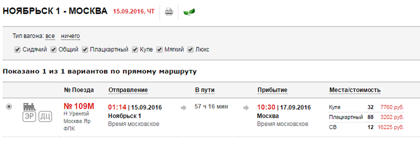 Ж/Д билеты Ноябрьск – Москва