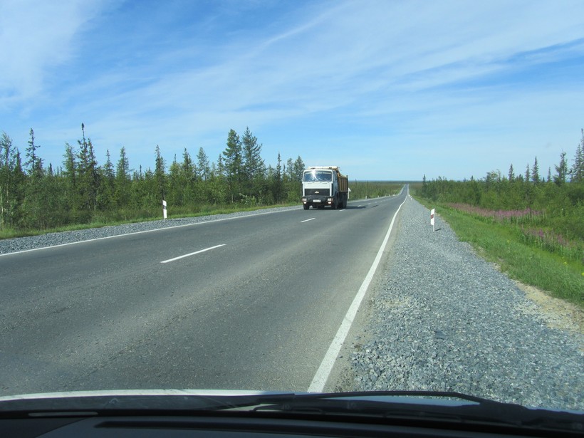 От Салехарда и до Сургута качество дороги очень низкое. Если не уверены, что сможете проехать порядка 18 часов подряд за рулем, то лучше переночевать в Новом Уренгое, а потом уже в Сургуте. По одной полосе в каждую сторону, часто на трассе отсутствует разметка, да и очень часто на дороге сплошной гололед. Нужно быть очень внимательным на этом отрезке пути. Есть грунтовые дороги, однако, в сравнительно нормальном качестве, проехать можно даже после дождя. Заправок и закусочных здесь минимум, будьте готовы, что остановок почти не будет. Желательно иметь запас бензина с собой. Трафик очень низкий.