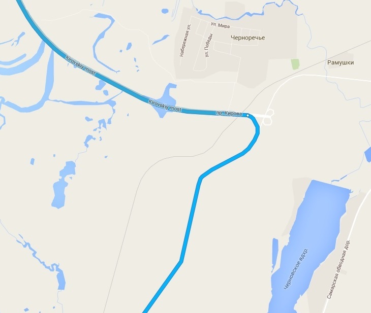 Из Самары надо выезжать по проспекту Кирова, который ведет на мост через речку Самара.