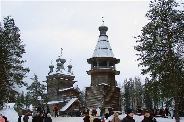 Здесь и величественные деревянные храмы, и огромные северные избы.