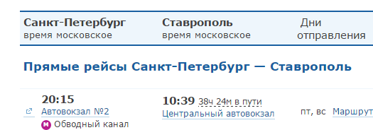 С Питера в Ставрополь отправляется автобус в 20.15 с автовокзала №2.