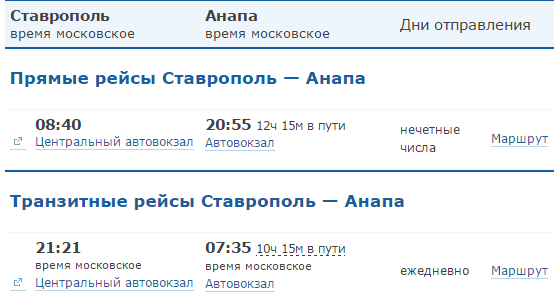 Из Ставрополя в Анапу отправляются автобусы в 08.40, 21.21.