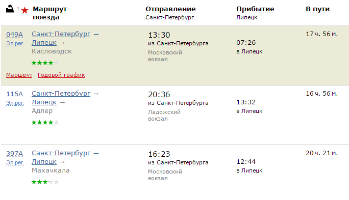 Расписание поездов по направлению Санкт-Петербург - Липецк