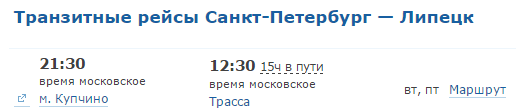 Расписание авиа рейсов по направлению Санкт-Петербург - Липецк