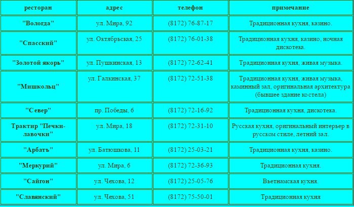Если в столовой вы кушать не захотите или выберете отель с самостоятельным питанием, то в Вологде есть много прекрасных ресторанов: