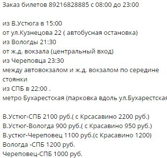 Лично я, поездки на данном виде транспорта не люблю (особенно на большие расстояния). Но для тех, кто всё таки решиться поехать в Устюг на автобусе приведу расписание и цены на фото: