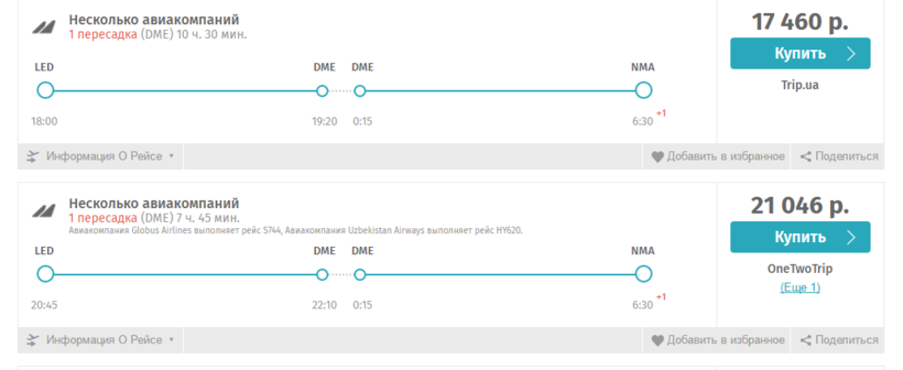 Будьте готовы к долгому пути (практически 4 дня), за это время вы успеете сделать пересадку в одном из городов (как рейс выберите), и познакомиться со всеми, кто делит участь путешественника в Наманган. Стоимость билета будет включать оплату всех пересадок.