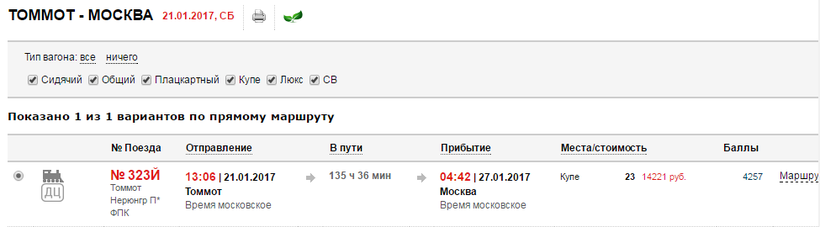 - На поезд до Москвы цена билета составляет 14221 рубль.