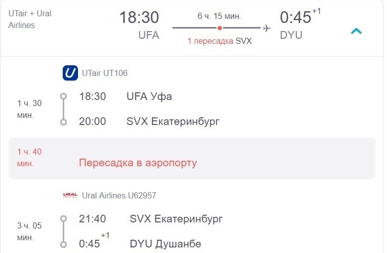 Ну а теперь расскажу про само воздушное путешествие. Летела я до Душанбе с пересадкой, потому что прямых рейсов нет. Пересадку делала в Екатеринбурге. Вот нашла похожий вариант.