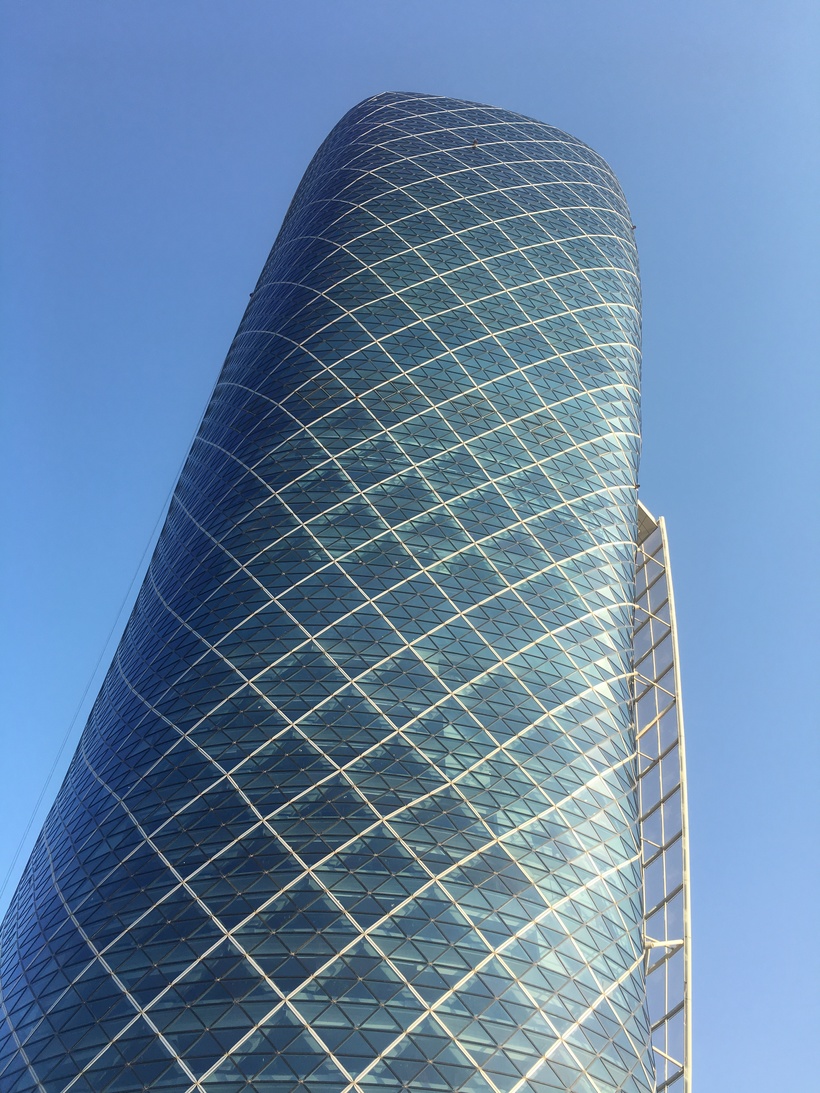 Абу-Даби город необычных небоскребов. Их кстати не очень много здесь. В остальном в принципе достаточно типичный город современных технологий строительства. Если в Дубае большинство зданий пытались показать какую-то свою изюминку, то здесь я бы сказал, что нет такой задачи. Много домов, которые просто похожи друг на друга. Это кстати касается и частного сектора. Но про него говорят, что это делается специально чтоб никому обидно не было. Это ж построено государством для граждан.