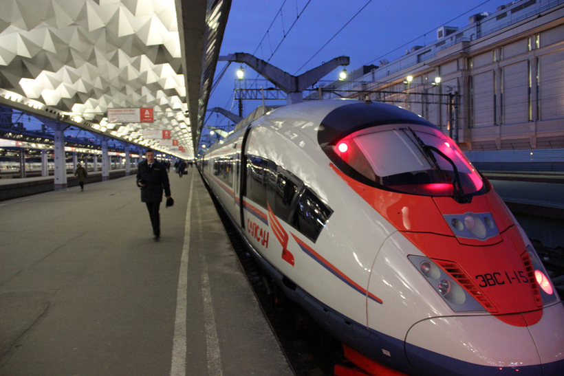 От Москвы в сторону Питера ходят как обычные поезда, так и скоростные. Если сядете в обычный поезд, то доедете примерно за 8-9 часов. А вот если в скоростной «Сапсан», то доедете меньше чем за 4 часа, да и поезд очень комфортабельный.  Сойдете вы на Главном железнодорожном вокзале Санкт-Петербурга.