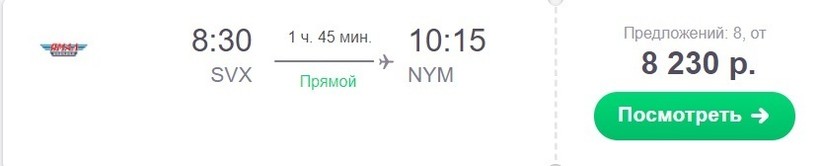 В небе нужно провести от 1 часа и 45 минут до 2 часов и 20 минут. Рейсы осуществляют данные компании: Yamal Airlines и RusLine.