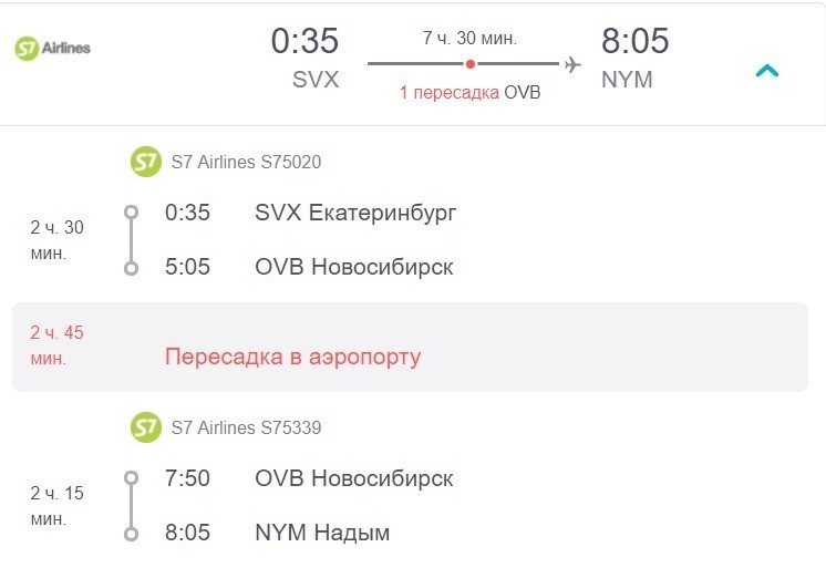 В остальные дни до Надыма можно долететь с пересадкой. Ее сделайте, например, в Новосибирске. Дорога займет семь с половиной часов.