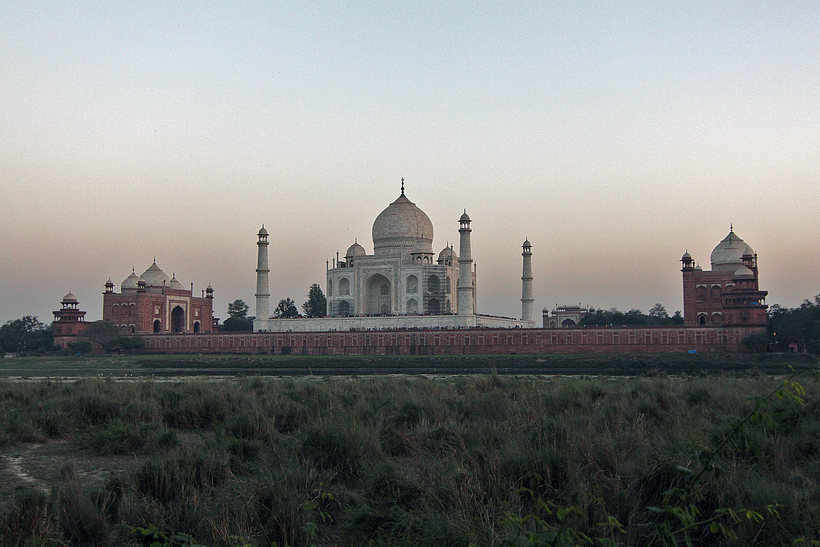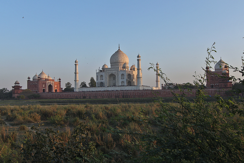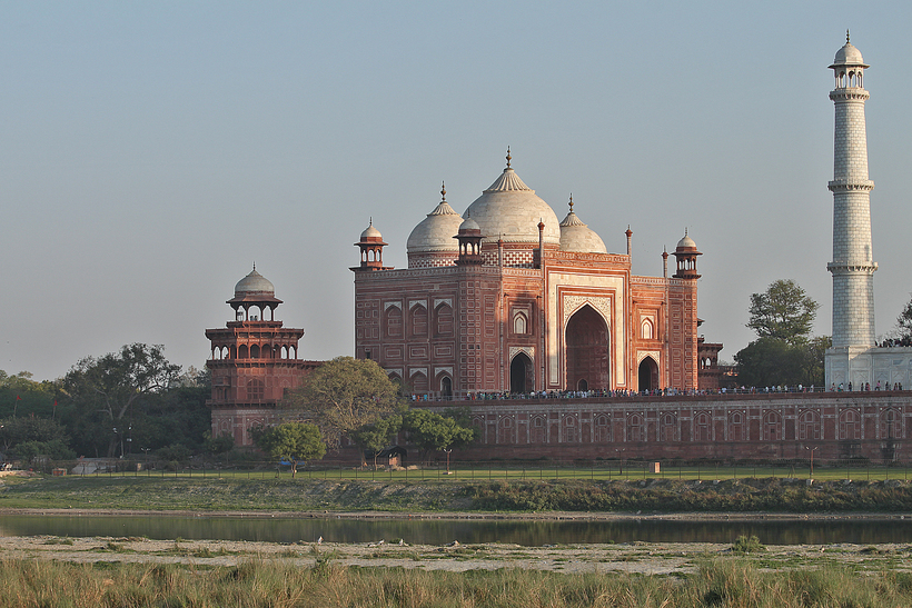 Но главным символов Агры, конечно, является Тадж-Махал. И совсем рядом с вышеперечисленными достопримечательностями есть одно место, откуда открывается необычный, отличный от классического, вид на этот мавзолей. Несомненно, стоит заехать сюда, чтобы увидеть другую сторону Тадж-Махала. Место это находится на противоположном берегу реки. Там расположен небольшой парк с оборудованной смотровой площадкой. Вход платный. Сам парк ничего особенного собой не представляет, поэтому заходить в него не обязательно. Если перед входом в парк повернуть направо и пройти вдоль забора, как раз выйдете к реке, где тоже есть импровизированная площадка с отличным видом. Лучше приехать сюда на закате, и наблюдать, как лучи солнца окрашивают белоснежный мрамор в причудливые цвета. Место довольно популярно, но толп нет. Это, скорее, место для романтиков и созерцателей.Могут быть комары, запасайтесь репеллентами.