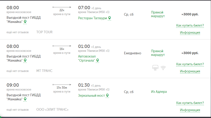 - выезд в 8 утра по средам и субботам из Сочи и прибытие в Тбилиси в 7 утра;