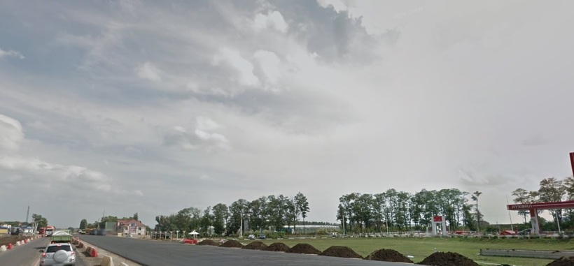 Вот крупный план, чтобы не проскочили. Как указатели сообщат, что десяток километров осталось, смотрите на пейзаж внимательнее. Впереди развязка - будете потом разворот искать.