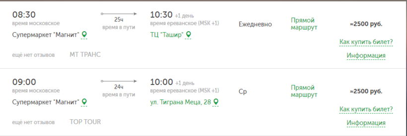 Стоимость билета на оба автобуса одинаковая и составляет 2500 рублей.