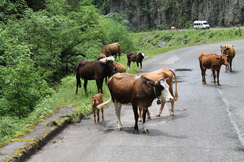 Первое, что предстоит вам сделать — это преодолеть границу между Абхазией и Россией. Сделать это нетрудно. Между двумя государствами подписано соглашение, согласно которому на пересечение границы виза не требуются, достаточно лишь иметь при себе паспорт гражданина РФ и свидетельство о рождении ребёнка (если таковой присутствует). Пересечение границы в целом займёт не больше сорока минут. Добраться до Очамчиру вам не составит никакого труда. Практически все крупные города Абхазии располагаются на Черноморском побережье. Забавно, но единственной цивилизованной дорогой страны является трасса того же самого побережья — Е60. Вам достаточно будет лишь двигаться по ней в восточном направлении и после Гагры, Нового Афона и Сухума вы достигнете Очамчиру. Протяженность пути от Адлера до этого города составляет 175 километров. В принципе, если не рассматривать простой на границе, то из одного города в другой вы доберетесь примерно часа за три. Хочу предупредить вас сразу об одном нелицеприятном факте. Абхазия — это государство с большой преступностью. Война с Грузией оставила своё «эхо», которое проявляется сейчас в отсутствии экипажей ДПС на дорогах; разрушенных домах, располагающихся на обочине; плохом качестве дорожного покрытия и ряде других факторов. Именно поэтому по пути вы не встретите ни кафетериев, ни заправочных станций (кроме тех, что находятся в городах, где отдыхают туристы). СМИ и на сегодняшний день предупреждают о том, что ехать отдыхать в Абхазию — это рискованное дело из-за неблагоприятной обстановки в государстве (лично я прочувствовал эту атмосферу всей душой), так что старайтесь не останавливаться в сомнительных местах, а уж тем более не бросайте свой автомобиль без присмотра где попало. Интересный факт. Когда вы будете путешествовать по Абхазии, вы наверняка встретите коров, расположившихся на трассе, которые совсем не боятся проезжающих мимо автомобилей :) Так животные спасаются от жары, ловя попутный ветер. Так что старайтесь ехать аккуратнее, не навредите животинкам :)