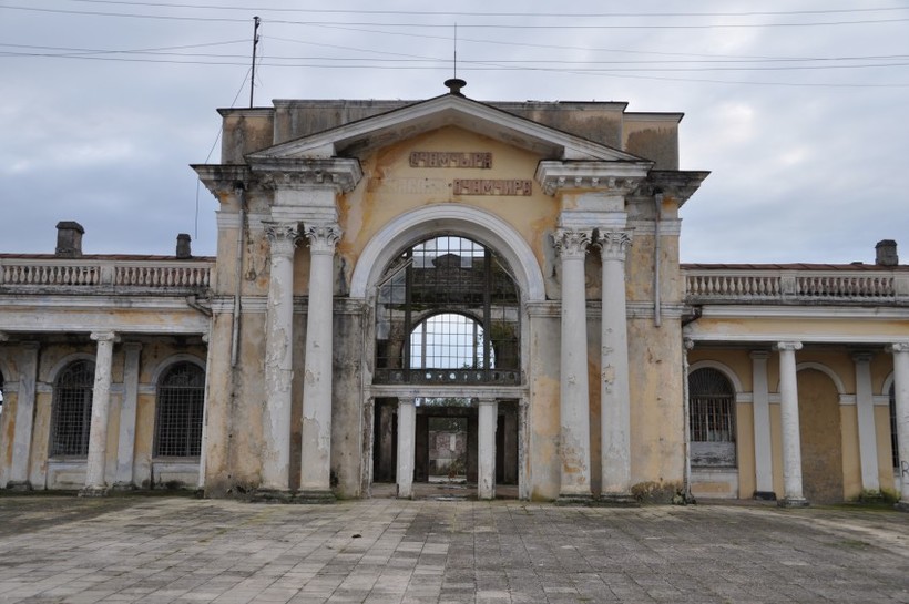В Очамчиру есть железнодорожный вокзал и даже когда-то там присутствовало движение поездов. Но на сегодняшний день это — одно из свидетельств Грузино-Абхазской войны 90-х годов. Вокзал не функционирует, да и движения на нем, к сожалению, вовсе нет. Зато там сейчас обитают наркоманы и бродяги.