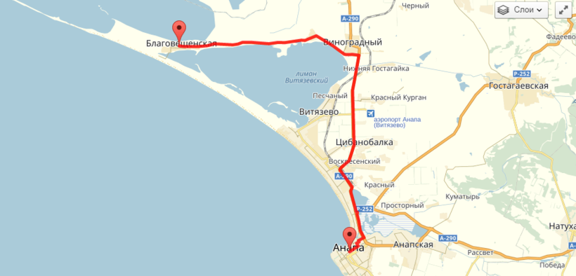 Что встречается на пути Анапа – Благовещенская?