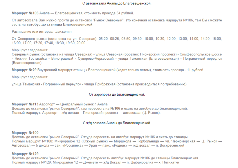 Местные жители услугами маршрутного такси пользуются даже чаще, чем услугами автобуса, так как этот транспорт чаще ходит по направлению Анапа – Благовещенская. Вот расписание маршрутных такси: