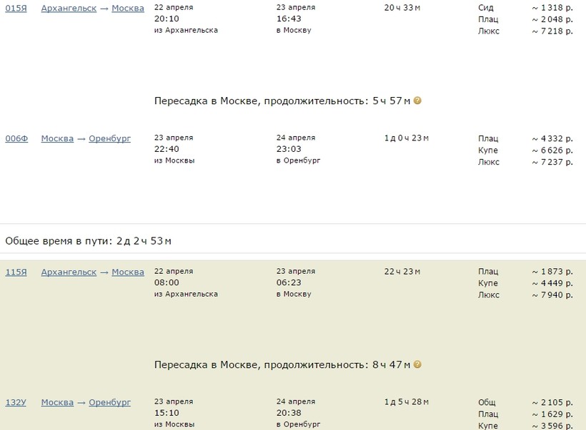 Но прямого сообщения между Архангельском и Оренбургом нет, поэтому путешествовать надо также с пересадкой в столице.