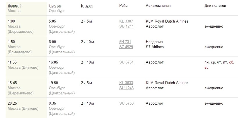- Из Москвы в Оренбург также ежедневно доступно около пяти авиарейсов. Перелет занимает чуть более двух часов.