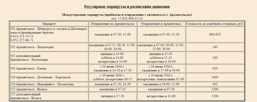 Билеты продаются в кассах автовокзала города Архангельск, также можно купить билеты у водителя автобуса.