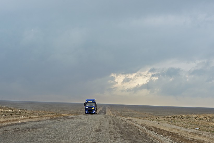 Дальше до границы с Узбекистаном угрюмые, пустынные пейзажи и пыльные бури... Трасса лучше не стала - песок, ямы, камни. Правда, вроде начали там ремонтные работы, несколько свежих латок повстречалось. Кстати, это расстояние - безжизненная пустыня, где нет ни заправок, ни кафе, ни туалетов, ни электричества, ни воды... Ехали 400 км около 8 часов, будьте готовы к этому. Около 80 км до пограничного поста с Узбекистаном - откровенная стиральная доска, едешь с черепашьей скоростью, рискуя задохнуться от пыли. На границе перед нами было около 40 машин, длительное ожидание и дальше путь по Узбекистану, трасса там приличная до Кунграда. От Кунграда до Муйанака ушатанная, но по сравнению, что было в Казахстан до этого, то показалось чуть ли не автобан:)). После до Бухары трасса через пустыню, дорога новая. Дальше по сценарию Навои, Самарканд, там тоже нормальная трасса. Но трафик плотный. До границы с Казахстаном - стиральная доска. В Шымкенте вышли и я сказал, что больше не хочу таких поездок.
