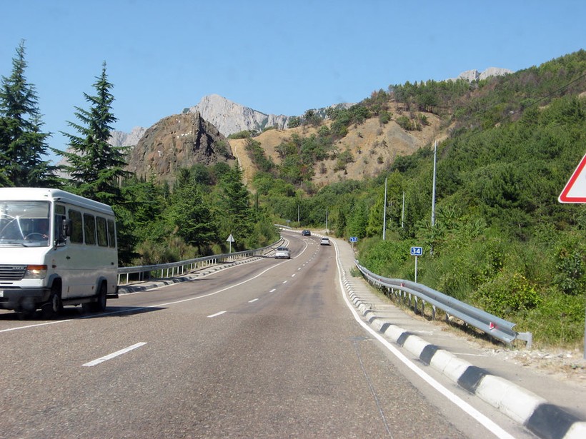 Маршрут был несложный, сначала по плану мы взяли курс на Элисту. Всегда удивляюсь на автомобильных форумах, где ругают дороги Калмыкии. Не так страшен черт, как его малюют. Конечно, любят калмыки понаставить знаков о ремонте дороги и ограничение в 20 км/ч, это правда. А вот качество полотна нормальное, да пейзаж однообразный - степи с овцами, ни одного дерева, немного скучно. Так для того наверное гаишники и тормозят всех не местных, чтобы не уснули за рулём от скуки. Кстати, на бабки там реально можно попасть, нас остановили за +12 километров и потребовали 3000 рублей, если нет знакомого калмыка в машине - будет туго, хорошо друг родом оттуда, быстро разрулили это дело (отпустили бесплатно). В Ставропольском крае дороги отличные, свободные, поборов нет, но очень повышенный контроль - часто проверяют документы. В Ипатово будьте внимательны, выезд с заправки с не читаемой разметкой и отсутствием знаков. После Ипатово уходим на Кропоткин, там трасса отличная, ехать приятно. Отдельное спасибо хочется сказать дорогам Краснодарского края, такого порядка я ещё не встречал. Широкая трасса в несколько полос, свежая разметка, знаки, соблюдение всех правил дорожного движения. Красота. До самого порта Кавказ, конечно, качество дороги стало хуже, встречались ямы. В порту мы пару часов проторчали в очереди, хотя билеты на паром у нас были приобретены заранее. Переправились через пролив, это прям самая красочная часть путешествия. Спустились в Керчи и поехали вдоль побережья через Судак в Ялту, можно было рвануть через Симферополь, так быстрее и дорога там намного лучше, но у нас же в салоне были дамы, а им красоты подавай. Вот и пришлось трястись 30 км/ч по серпантинистой дороге с сюрпризами.