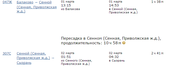 Для меня лично больше всего подходит пересадка в Сенном на Сызрань в 18.35. Время ожидания на посадку в Сенном всего три с половиной часа.