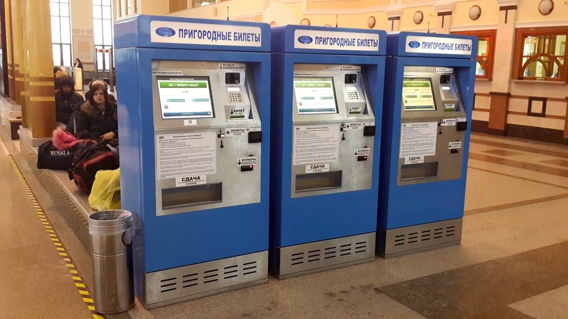 Билеты можно купить только на месте отправления - в кассе или с помощью терминалов самообслуживания синего цвета. Станцию прибытия вы выбираете самостоятельно, а вот станцию отправления изменить не сможете. Автоматы принимают и социальные карты (если имеете право на льготный проезд - не забывайте предоставлять соответствующие документы), и банковские - но если возникнут вопросы, ответить он не сможет. Видимо поэтому так редко у них толпится очередь..) Так выглядят автоматы: