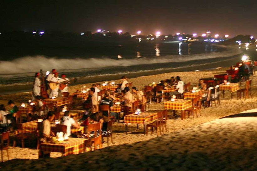 Во время ужина все уезжают в поселок Джимбаран для встречи прекрасного заката. Все побережье пляжа это много кафе и ресторанов. Самая главная фишка просить дешевое меню в кафе. Кто не знает этого, сильно переплачивает за ужин. Так же вечерами играет живая музыка.