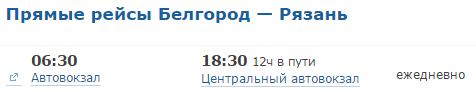 Расписание автобусных рейсов по направлению Белгород - Рязань