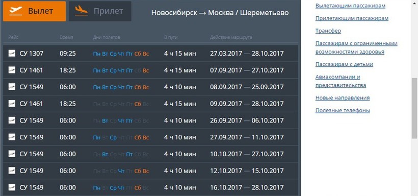 Далее следует добираться в столицу, однако сразу учтите, что наиболее удобным для вылета будет аэропорт Шереметьево, поэтому старайтесь брать билеты до него. Здесь уже доставит компания «Аэрофлот» и приземлиться можно через 4 часа 15 минут. Обратите внимание, что вылеты есть в разное время и дни, ориентиром для покупки билета является сезонное расписание.