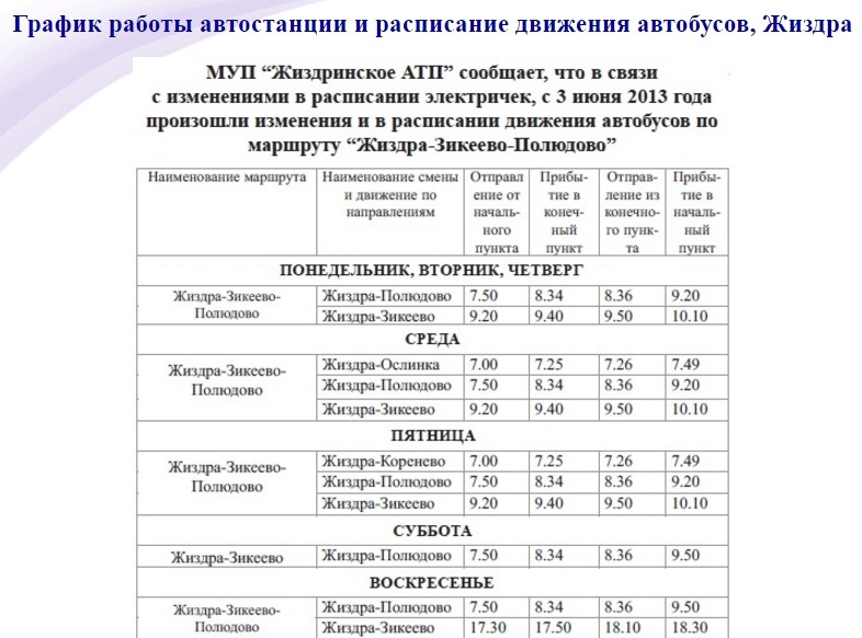 От станции пл. Зикеево ходят автобусы до Жиздры по расписанию.