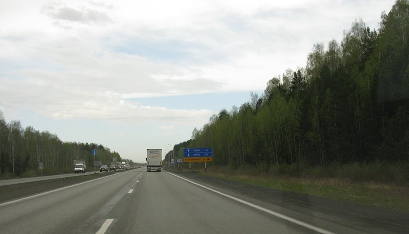 - До Екатеринбурга ведет трасса Р-242. По сути, эта дорога ничем таким примечательным не отличается, обычная трасса в две полосы, качество дороги относительно хорошее, ям и трещин почти нет, заправки периодически встречаются.