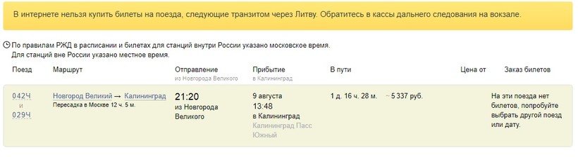 Ж/Д билеты Великий Новгород – Калининград