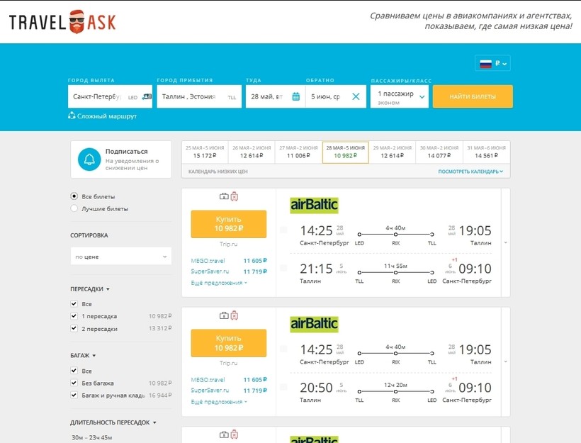 Или билет можно купить на сайтах авиакомпаний Air Baltic или Finnair.
