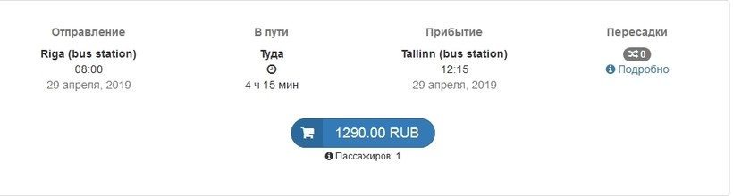Билет на рейс Рига — Таллинн составляет 1290 рублей (18 €).