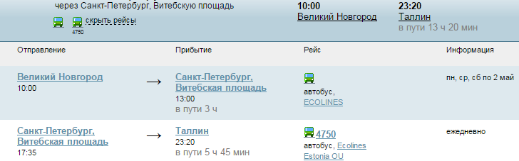 Проезд из Санкт-Петербурга в Таллин обойдется:
