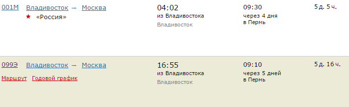 Данные поезда движутся из Владивостока на Москву и останавливаются в Перми. Продолжительность остановки - 20 мин, у вас будет время спокойно собрать вещи и выйти на нужной станции.