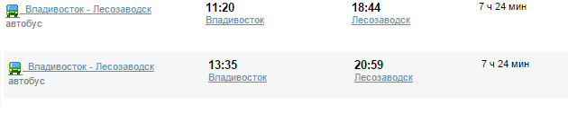 Отправляются они с главного автовокзала города Владивосток в 11.20, 13.35.