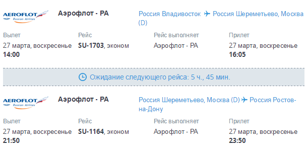 В данных городах на постоянной основе работают аэропорты, которые ежедневно принимают различные авиа рейсы. Однако прямого рейса из Владивостока в Ростов-на-Дону нет. Очень удобно пересаживаться именно в столице, время ожидания от 1 часа.