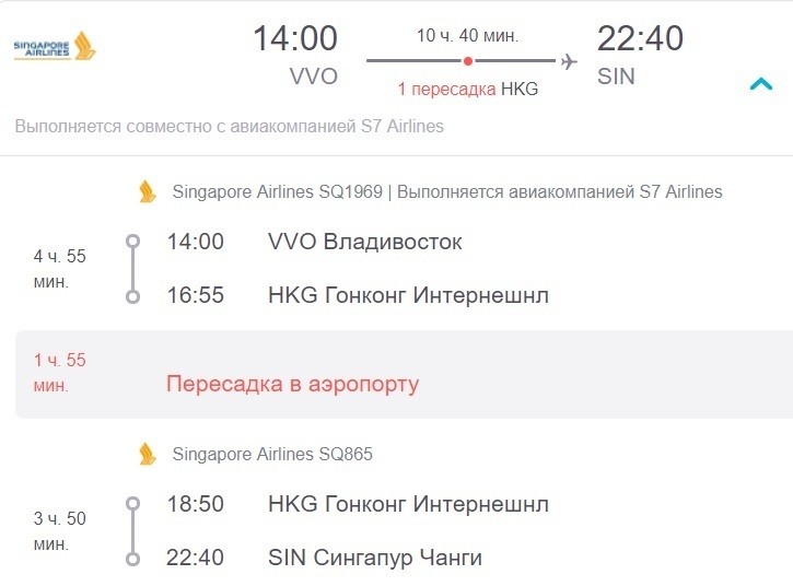 Весь путь займет почти одиннадцать часов. Гражданские перевозки по маршруту выполняют Singapore Airlines совместно с S7 Airlines.