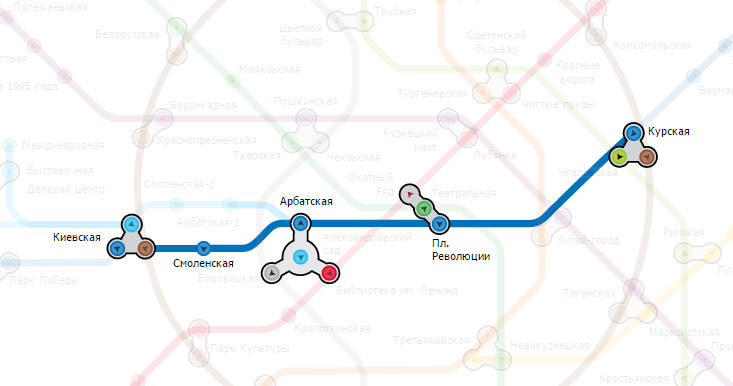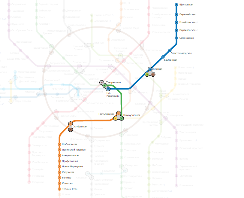 Из Владимира прямых железнодорожных рейсов в Калугу нет, только с пересадкой в Москве. Есть множество поездов и электричек, курсирующих через Владимир в столицу, а так же направляющихся в сторону Калуги. В поездке могут возникнуть такие трудности, что прибывают поезда на Курский вокзал, продолжать движение нужно с Киевского. При предварительном заказе билетов стоит это учитывать, иначе можно не успеть сделать пересадку, и деньги за билет окажутся потрачены впустую. Хочу заметить, что при передвижении наземным транспортом по Москве легко застрять в пробке. Предлагаю спуститься в метро, так будет удобнее. Проехав всего 3 остановки по синей ветке, окажетесь на месте, затратив на переезд примерно 20 минут.