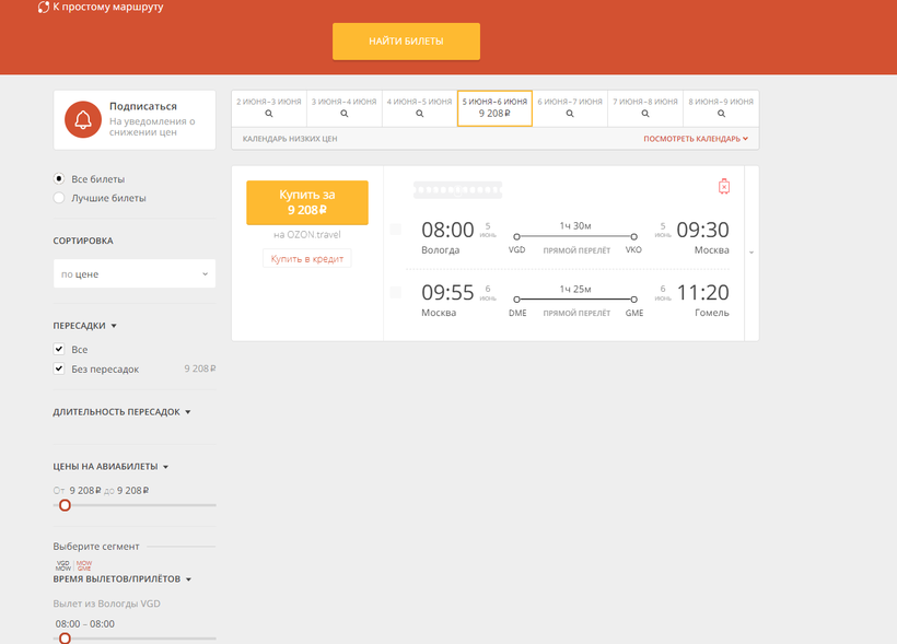 Вологда - Москва: около 5000р. Москва – Гомель: без пересадок примерно 4000.