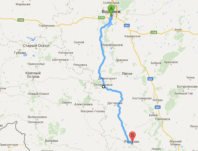 Расстояние до Россоши от Воронежа по автодороге через Острогожск = 217 км., в пути проведете около 4 часов.