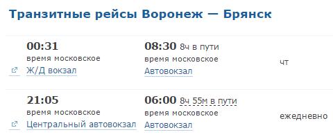 Расписание автобусных рейсов по направлению Воронеж - Брянск